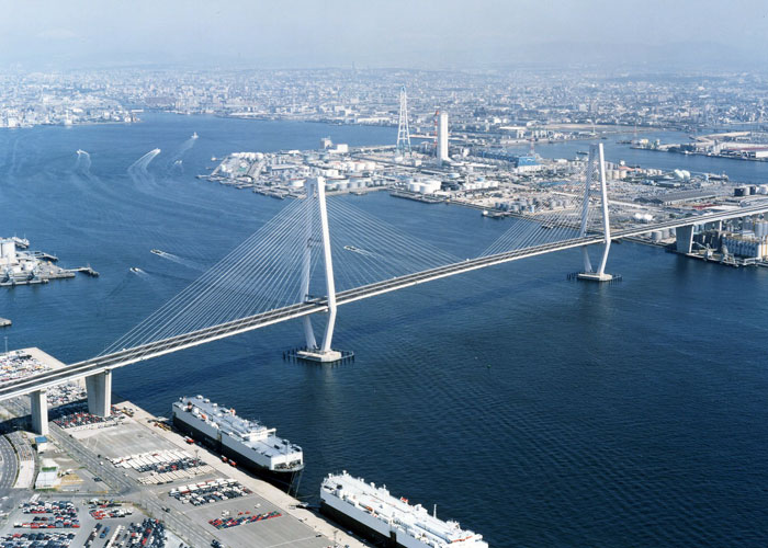 |  | 斜張橋 (しゃちょうきょう) | 塔から斜めに張った多数のケーブルを橋桁に直接つないで支える構造の橋 吊り橋の一種 名港中央大橋 |