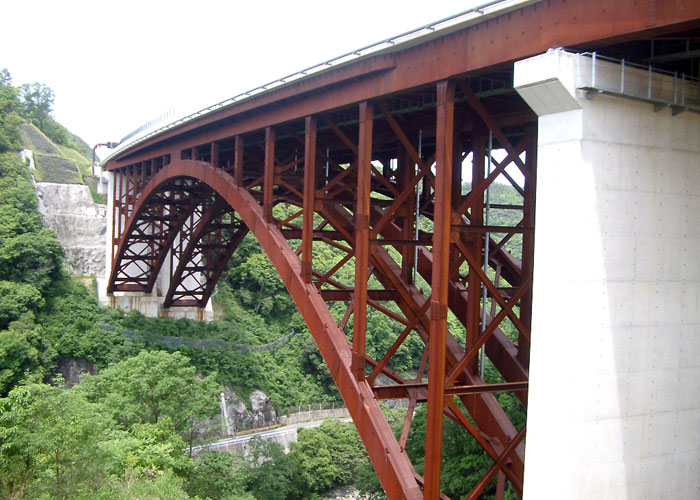 |  | アーチ橋 (アーチきょう) | 上に凸な弓なりの構造体(アーチリブ)を用いて荷重を圧縮応力だけで支える「アーチ機構」の橋 |